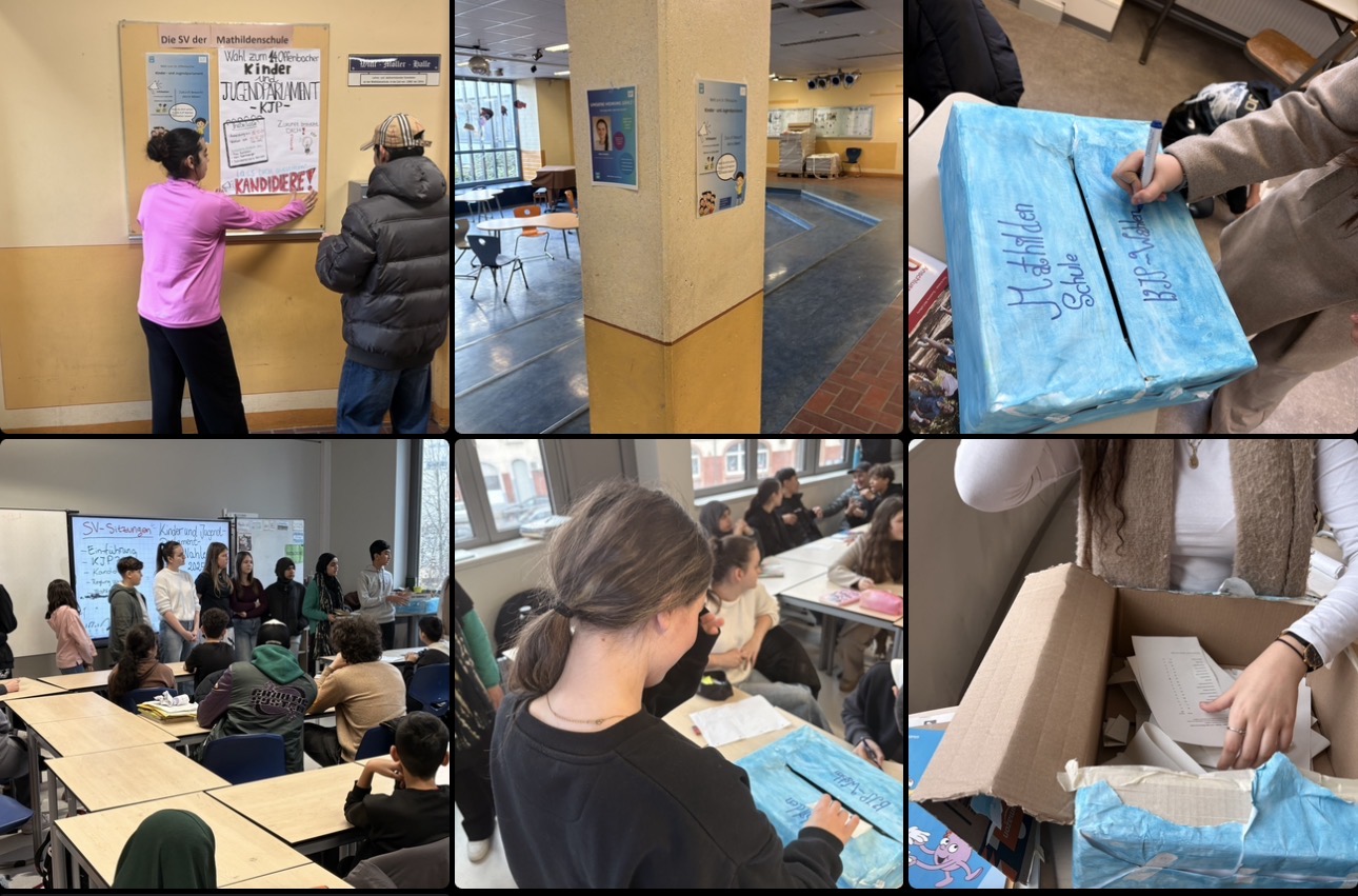 Im Rahmen der Wahl zum Kinder- und Jugendparlament (KJP) der Stadt Offenbach beschäftigten sich unsere Schülerinnen und Schüler intensiv mit dem Thema demokratische Mitbestimmung. Im Mittelpunkt stand das Anliegen, Jugendlichen zu zeigen, dass ihre Meinung zählt und sie auch auf kommunaler Ebene mitgestalten können.