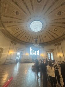 Während der Führung wurde ihnen das Schloss gezeigt, inklusive verschiedener Räumlichkeiten wie dem Musiksaal, der mit einem wunderschönen Kronleuchter geschmückt ist. Dieser besteht aus mehreren Tausenden von Kristallen und sorgt für eine besondere Atmosphäre. Außerdem erfuhren die Schüler viel über das Leben von Herzog Wilhelm von Nassau und seine Räumlichkeiten im Schloss.