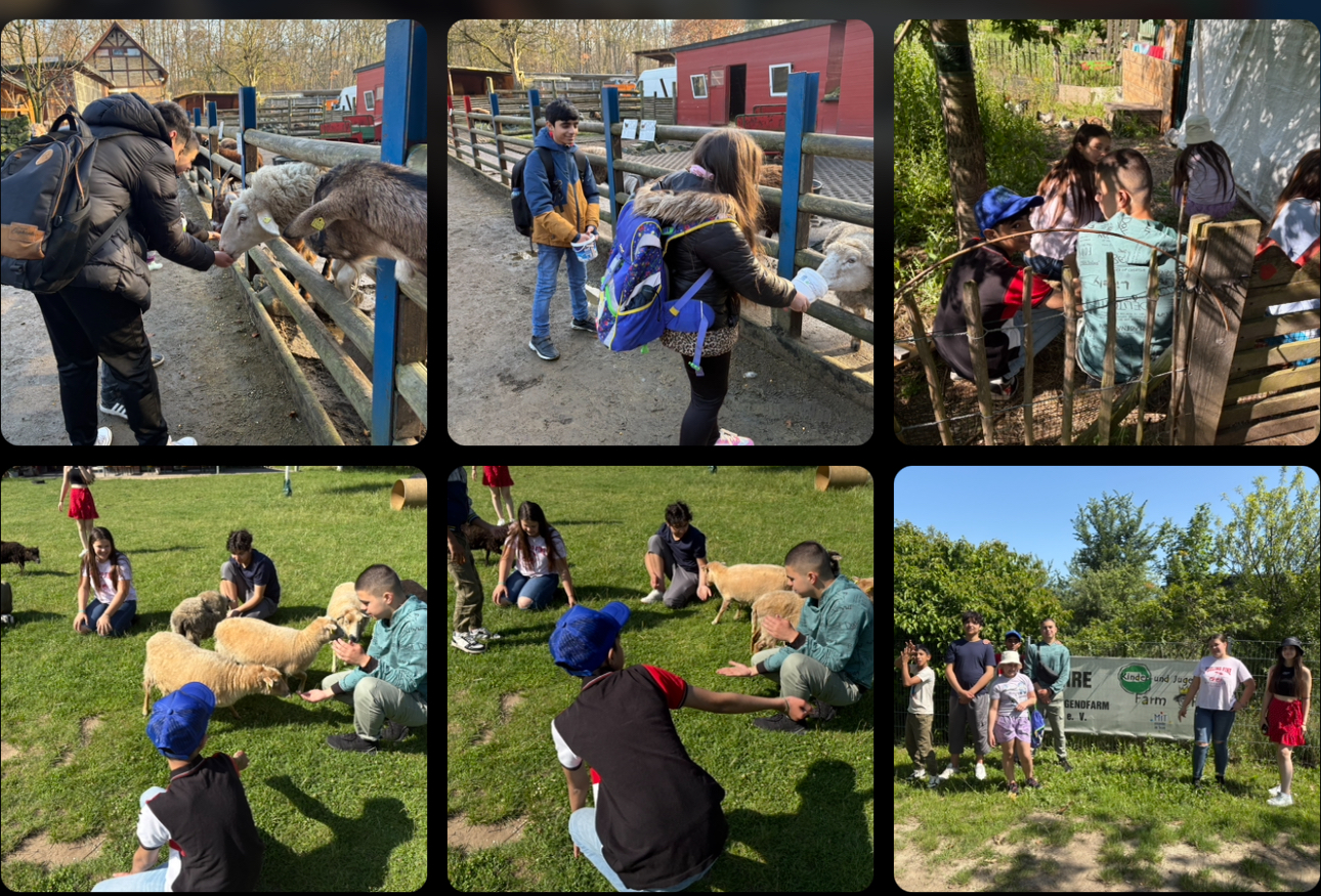 Anschließend konnten die Lebensmittel auch praktisch und in der Natur erlebt werden. Die Klasse hat an einem ersten Kennenlern-Besuch auf der Kinderfarm Offenbach teilgenommen. Dort konnten die Schüler:innen Tiere und Pflanzen direkt sehen, anfassen und benennen. Auch wenn es nur ein erster Kontakt war, war der Ausflug sehr motivierend und hat das Thema „regionale Lebensmittel“ greifbar gemacht.