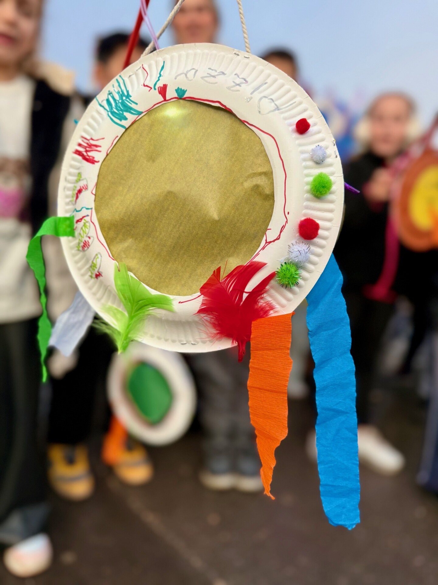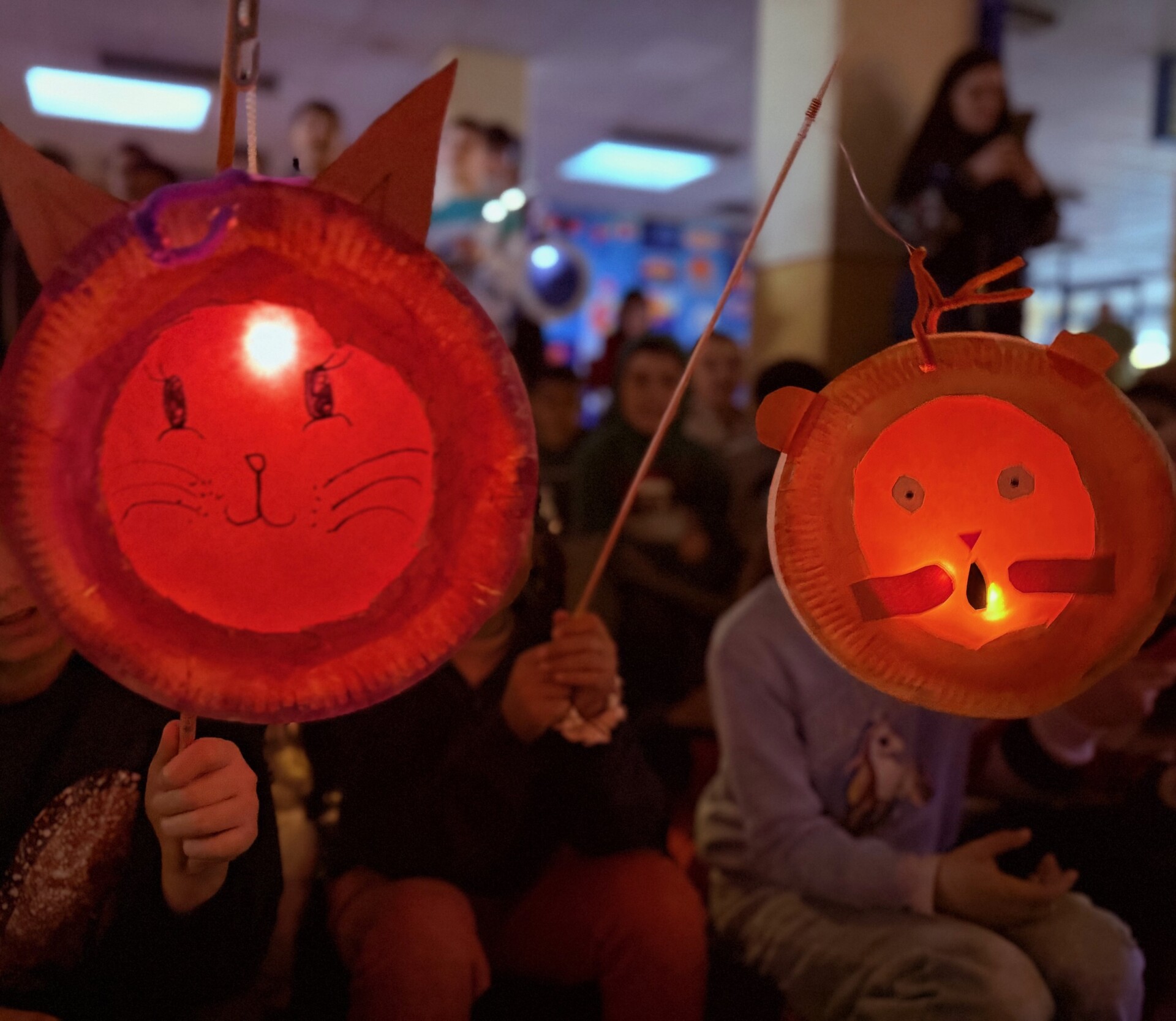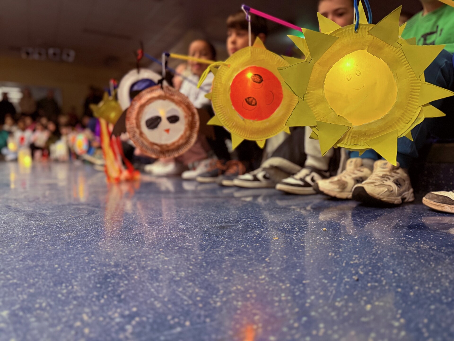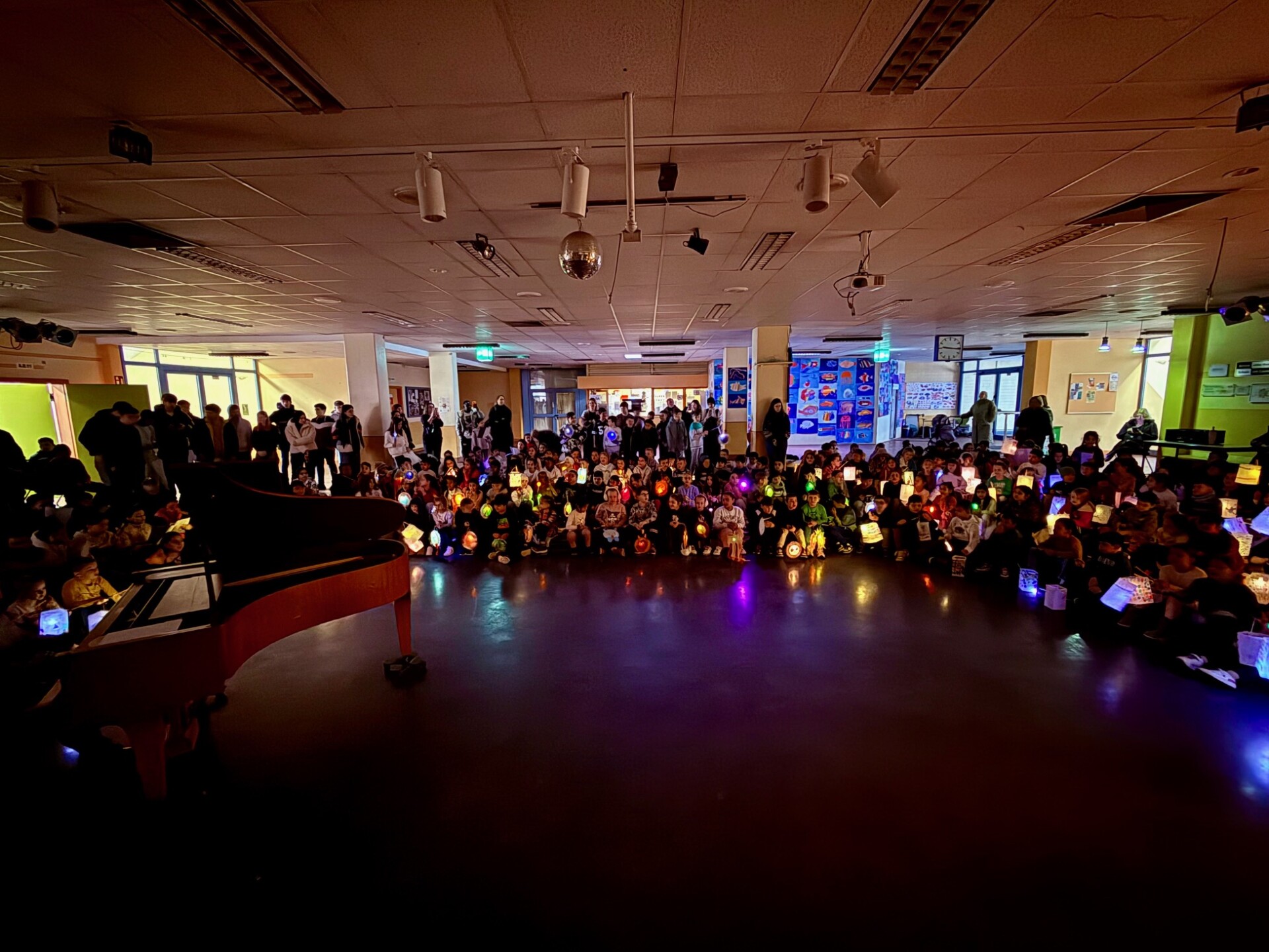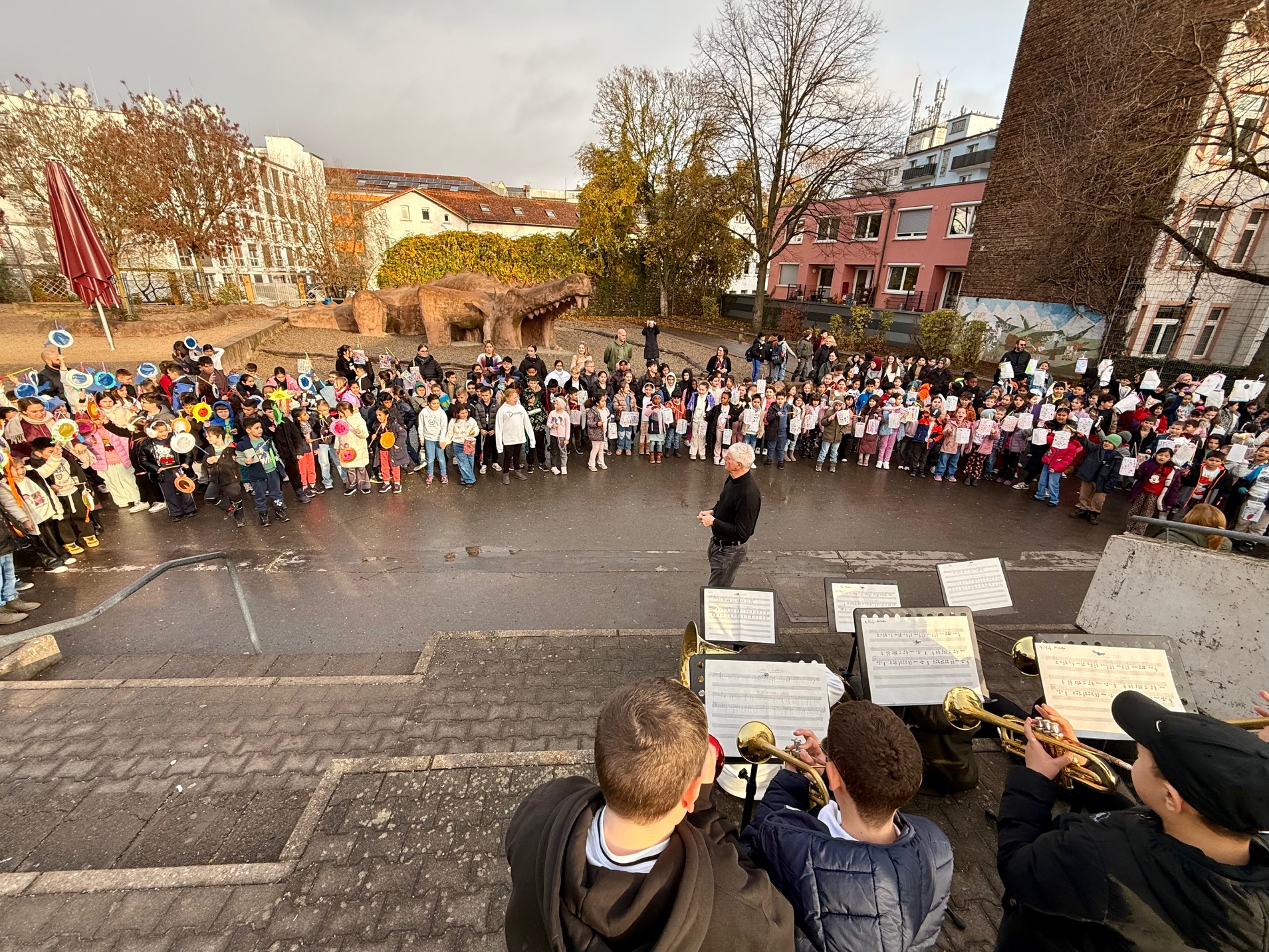 Am Dienstag, 11.11.25, fand gemeinsam mit allen Grundschulklassen das Martinssingen statt. In der Begleitung von Frau Manko auf dem Flügel und der Bläserband von Herrn Braun wurden neben einigen Liedern rund um das Laternen-Fest auch der Herbst besungen. Die Kinder haben wunderschöne Laternen gebastelt, die die blaue Halle in bunten Farben erleuchteten und zum Schluss mit einem kleinen Laternenumzug auf den Schulhof nach draußen getragen wurden. Dort endete unser schönes Beisammensein mit den Blasinstrumenten und Gesang unter freiem Himmel.   H. Sonntag