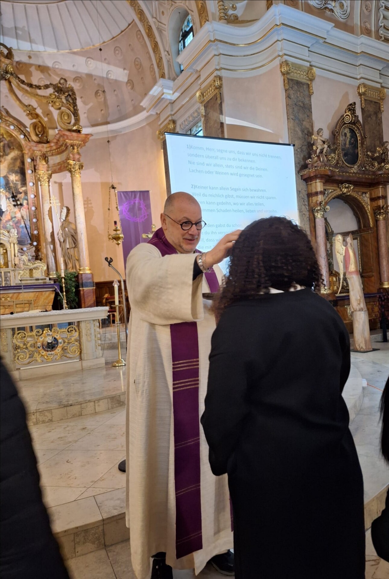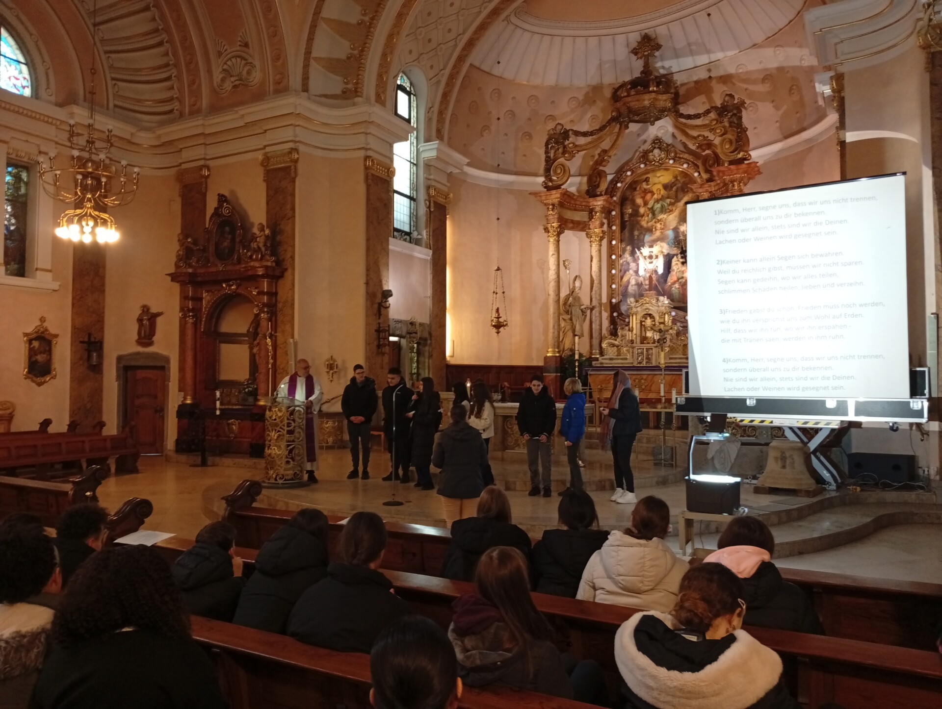 Wie in jedem Jahr haben die christlichen Schülerinnen und Schüler der Mathildenschule nach den tollen Fastnachtstagen am Aschermittwoch einen stimmungsvollen Gottesdienst in der Marienkirche gefeiert. Lieder, biblische Texte, Fürbitten, Gebete und ein Segen prägten den Ablauf. Sichtbares Zeichen für den Anfang der heiligen vierzig Fastentage war das Aschenkreuz, das die Kinder und Jugendlichen vom Priester auf die Stirn gezeichnet bekamen. Da in diesem Jahr fast gleichzeitig auch der Beginn der muslimischen Fastenzeit begangen wird, wünschen die Christen der Mathildenschule allen ihren muslimischen Freundinnen und Freunden einen gesegneten Ramadan.   G. Braun