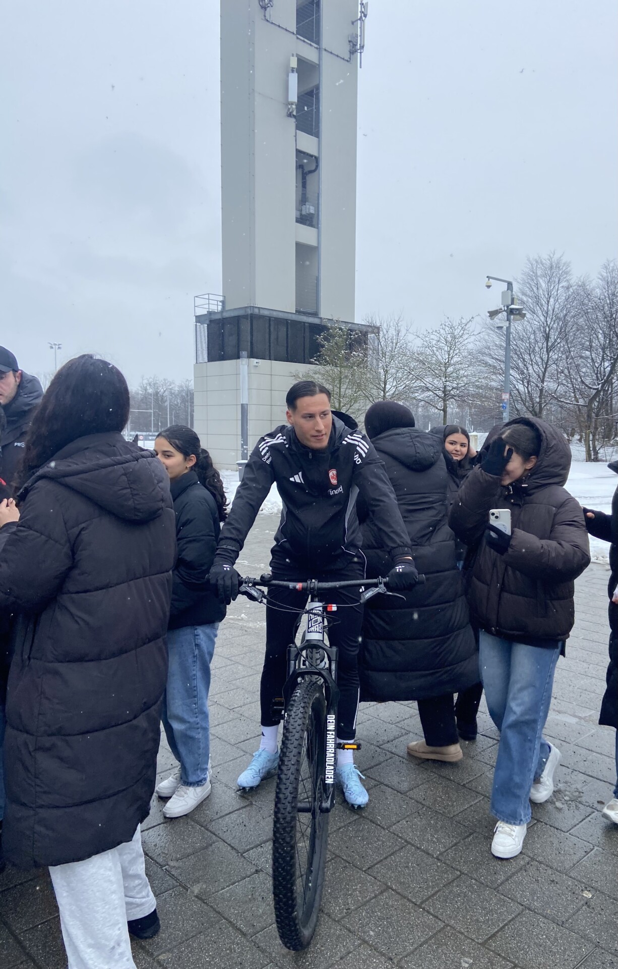 Das absolute Highlight des Tages: Ein Treffen mit den Eintracht-Spielern Younes Ebnoutalib und Can Uzun! Die beiden Profis nahmen sich Zeit für Fotos und Autogramme, was die Begeisterung der Schülerinnen und Schüler noch einmal auf ein ganz neues Level hob.
